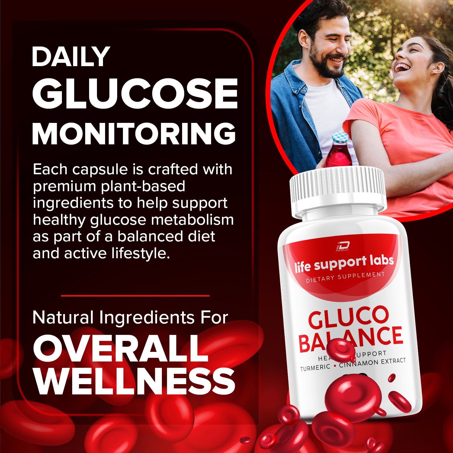 Life Support Labs | Gluco Balance is a dietary supplement available in capsule form, crafted to help maintain healthy blood sugar/glycogen levels.