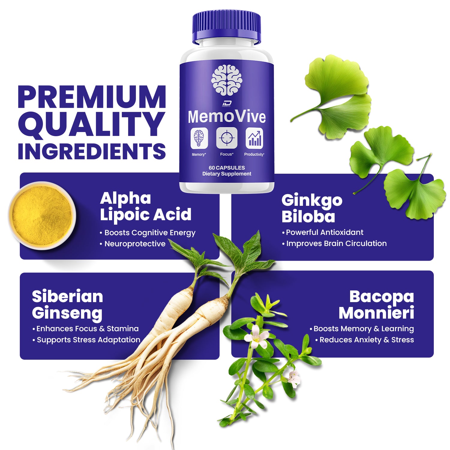 With its carefully selected ingredients, MemoVive offers a simple, effective addition to promote mental focus and well-being.