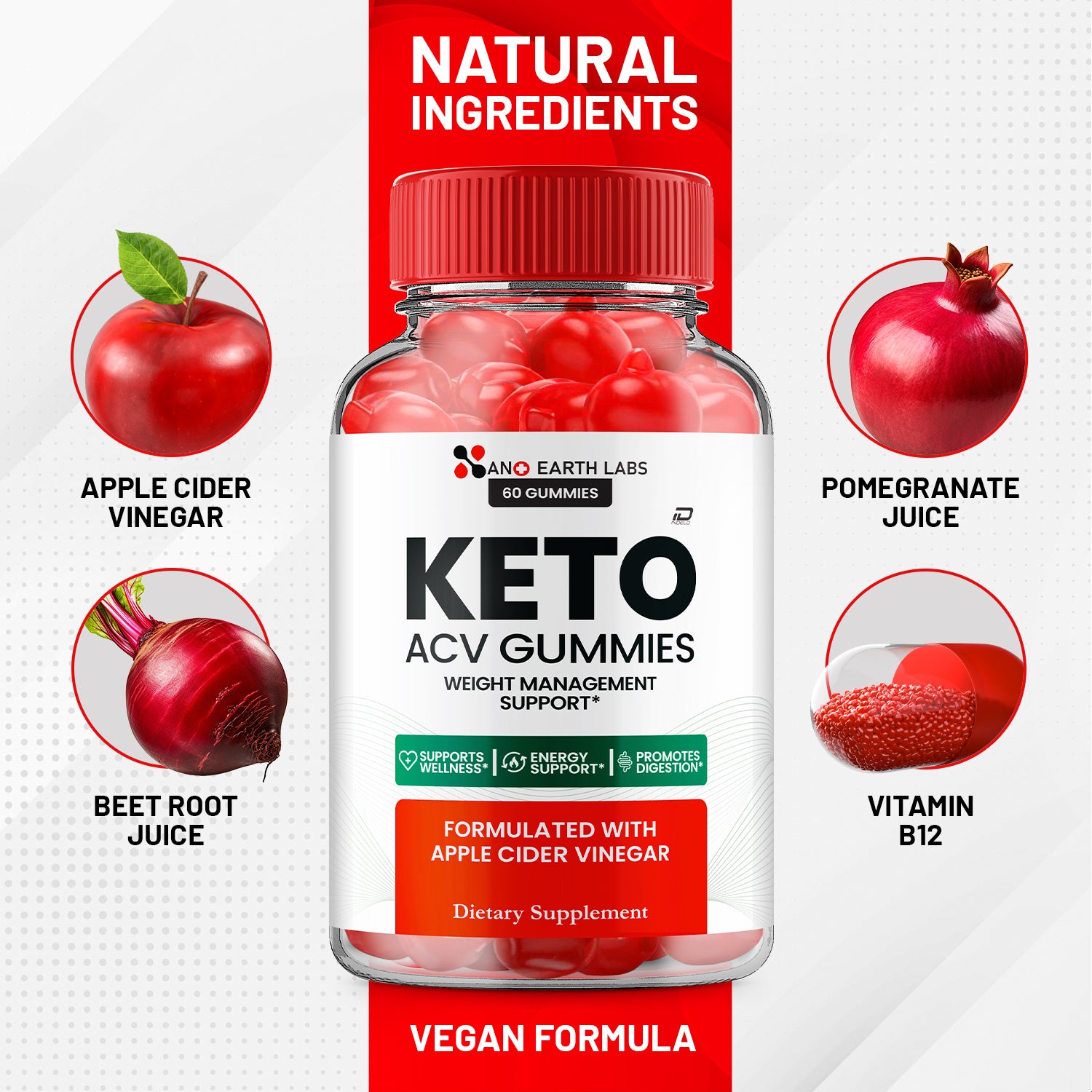 Enjoy the sweet taste of our Nano Earth Labs Keto Gummies, perfect for those following a ketogenic diet. Each gummy is formulated with high-quality, keto-friendly ingredients, ensuring you can indulge in a guilt-free treat.