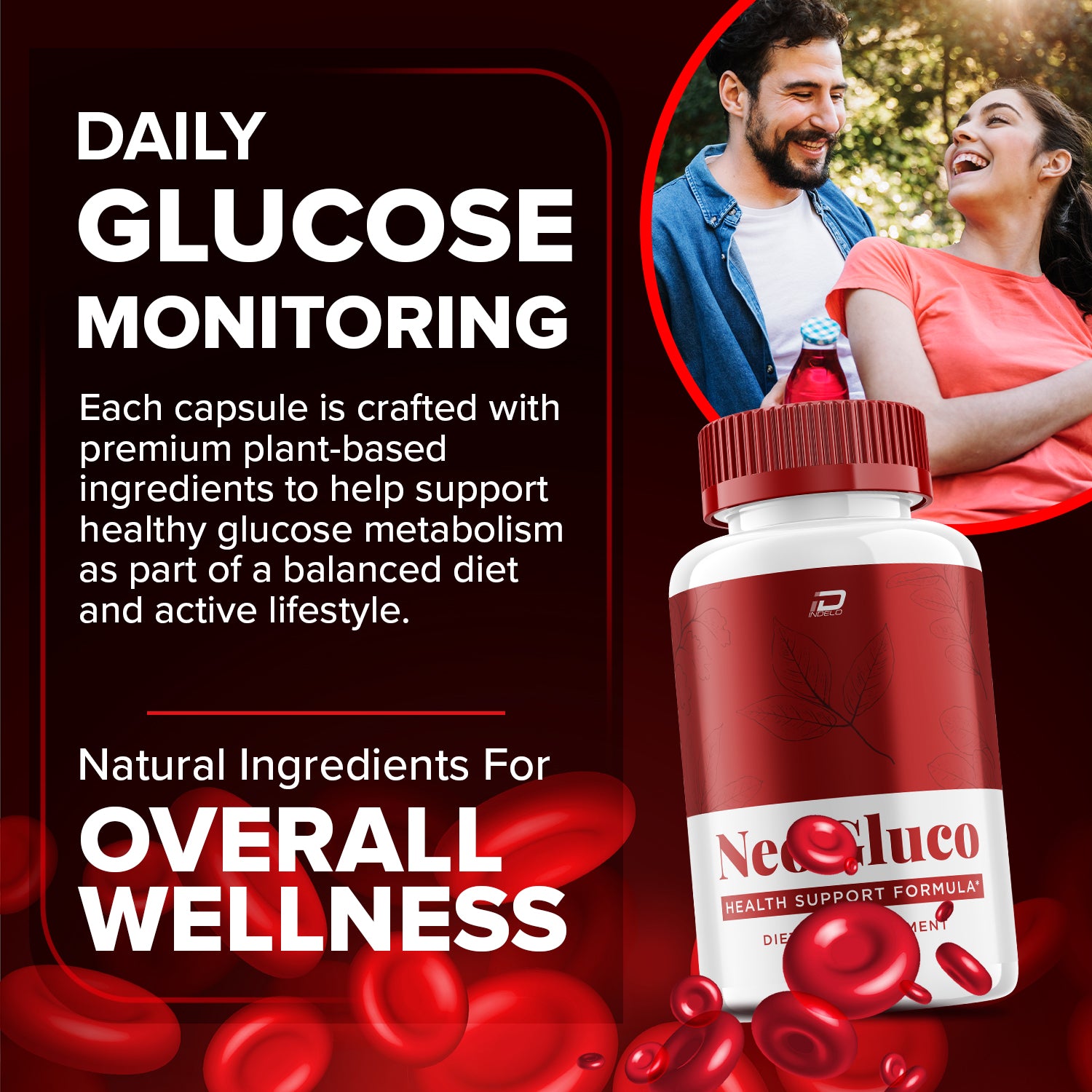 Neo Gluco is a dietary supplement available in capsule form, crafted to help maintain healthy blood sugar/glycogen levels.